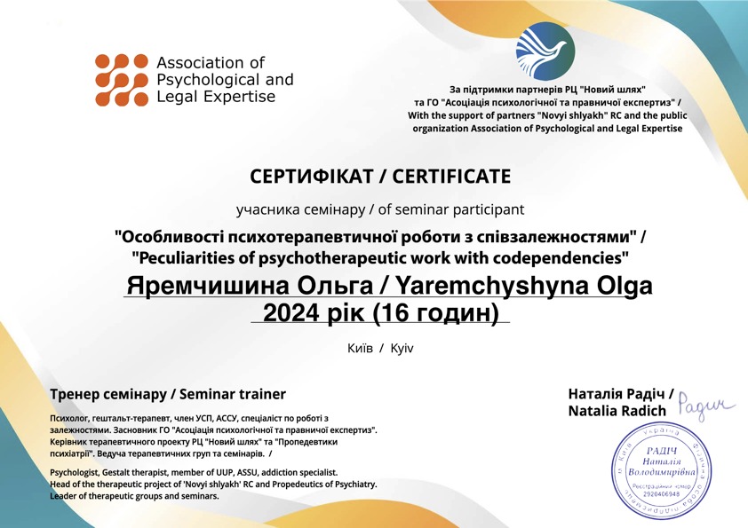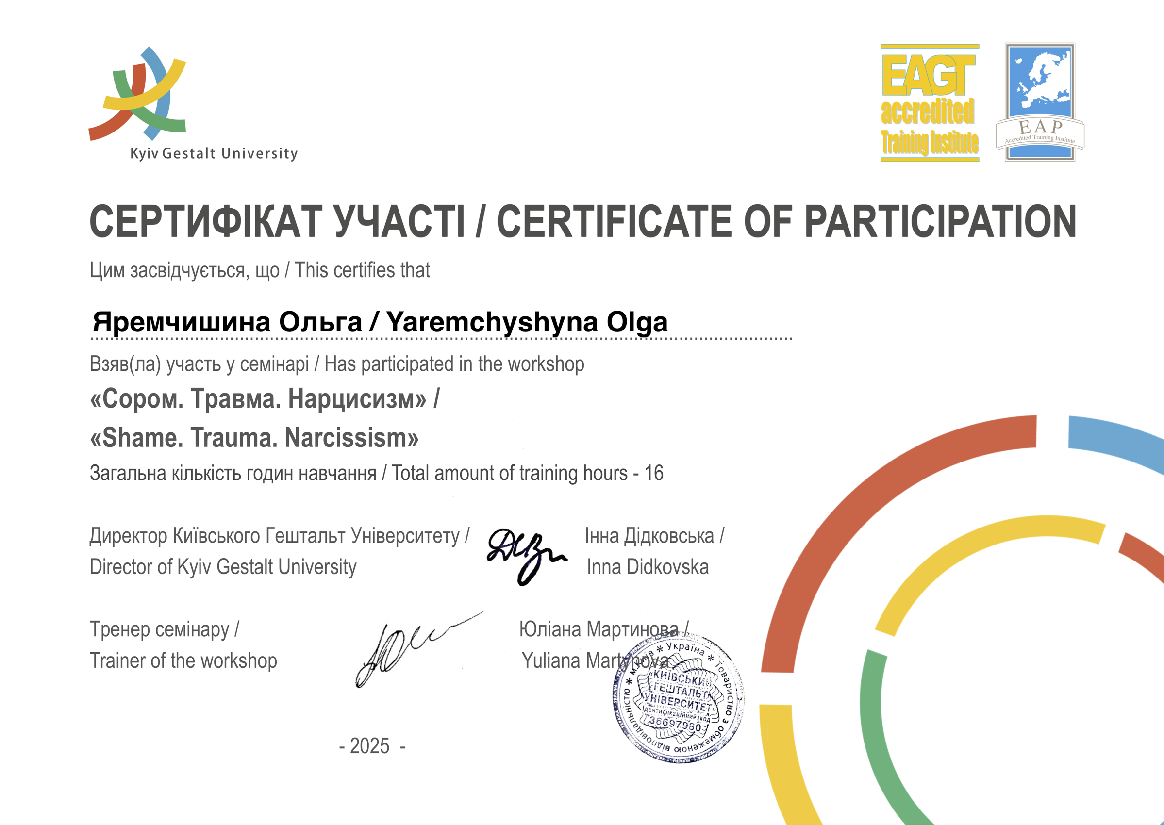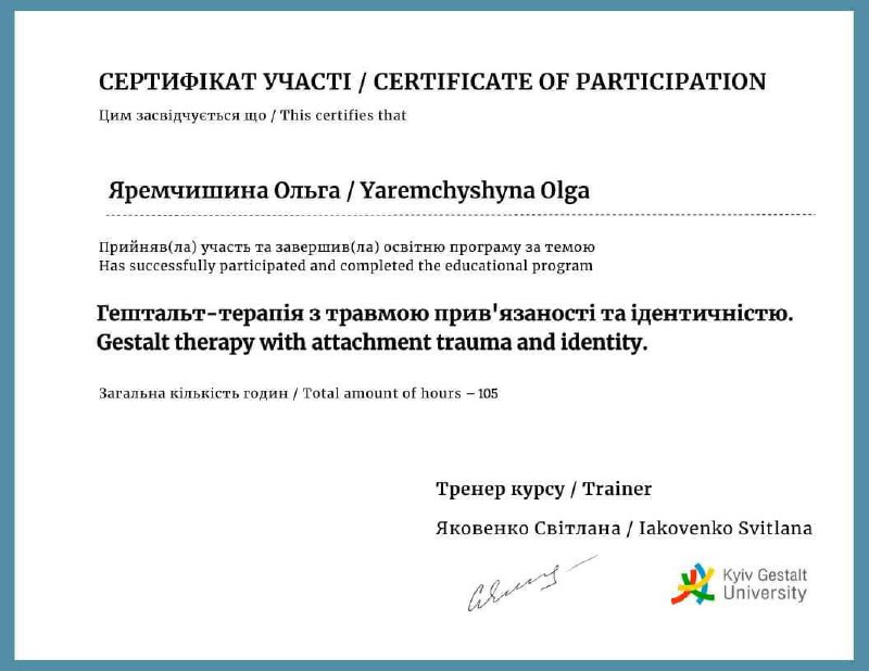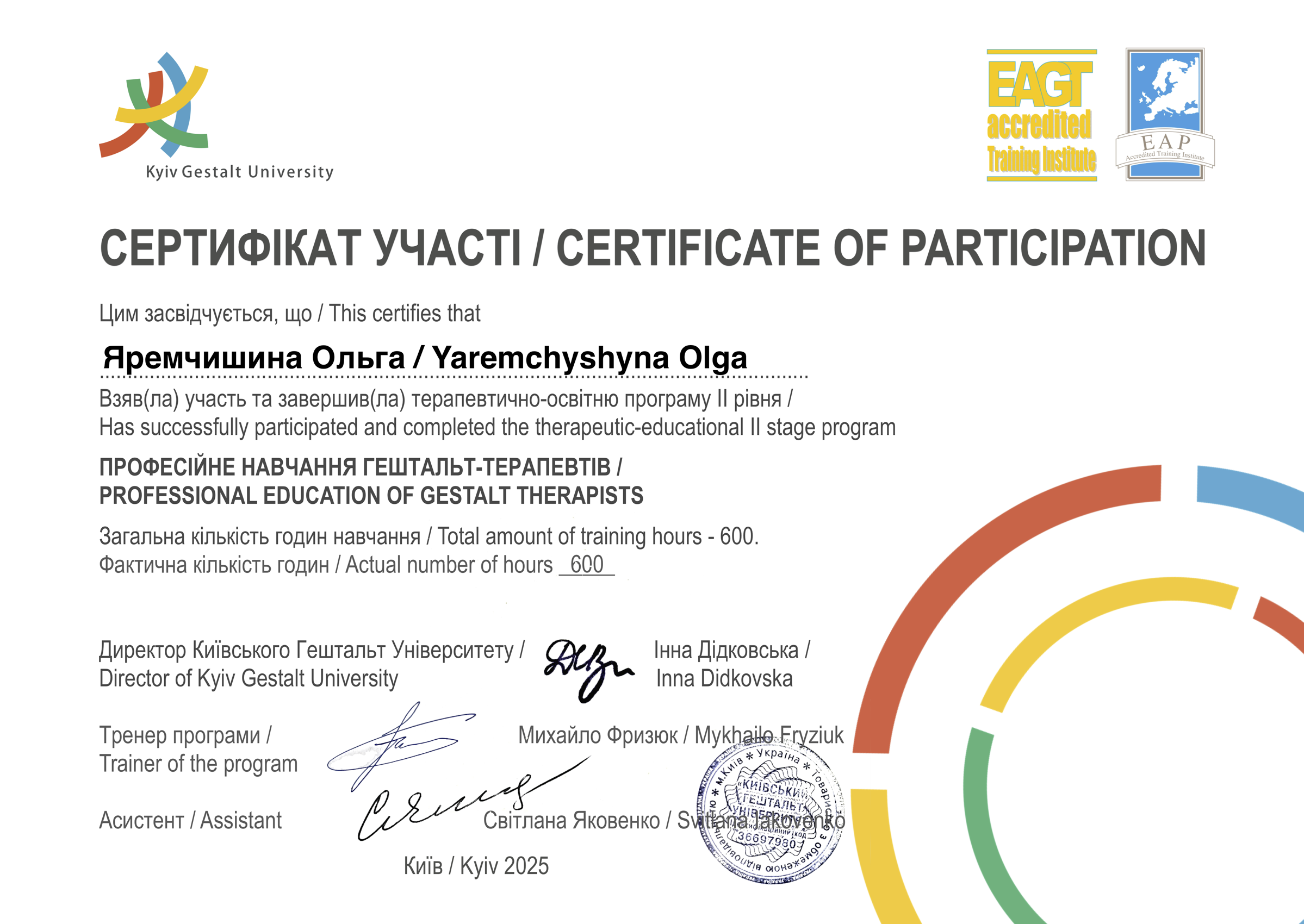 Яремчишина Ольга, практикуючий психолог у гештальт підході
