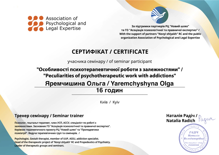 Відтоді я пройшла десятки годин індивідуальної та групової терапії, супервізій, продовжую професійне зростання.